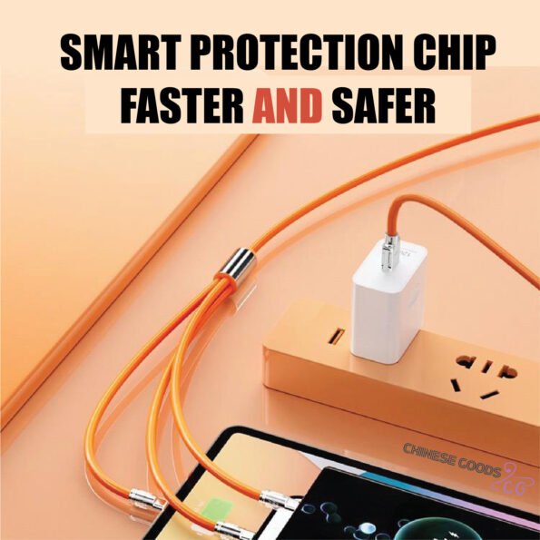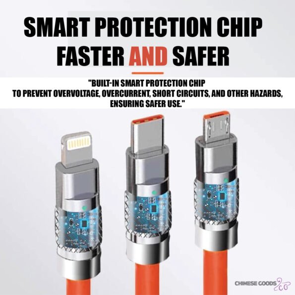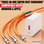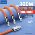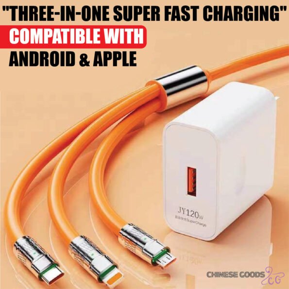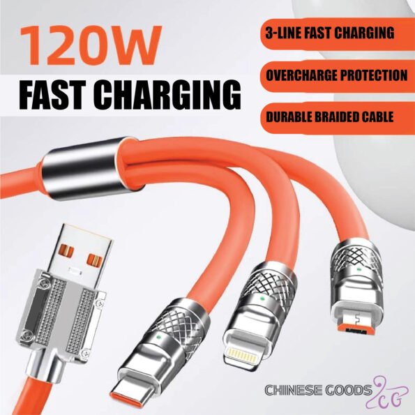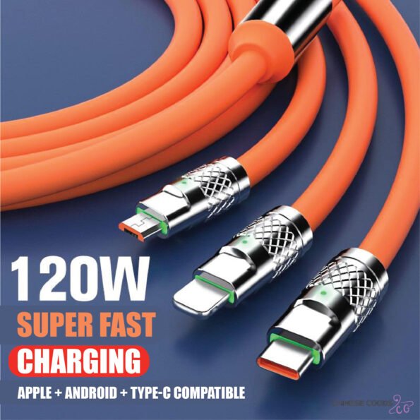 👉 একটি কেবলেই তিন ধরণের কানেকশন! টাইপ-C, মাইক্রো USB এবং লাইটনিং (iPhone) – সবকিছু একসাথে সাপোর্ট করে। সুপার ফাস্ট চার্জিং (120W) সুবিধার কারণে মোবাইল, ট্যাবলেট এবং অন্যান্য ডিভাইস একসাথে দ্রুত চার্জ করতে পারবেন।