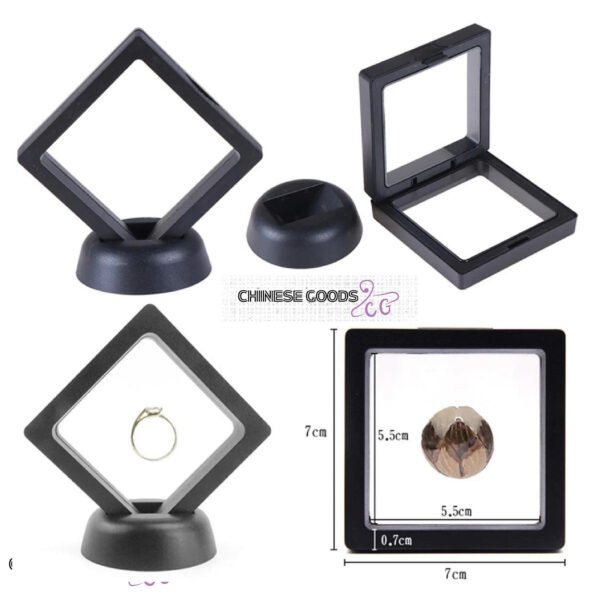 70x70mm Black 3D Floating Display Frame with Stand – Elegant Holder for Coins, Jewelry & Collectibles